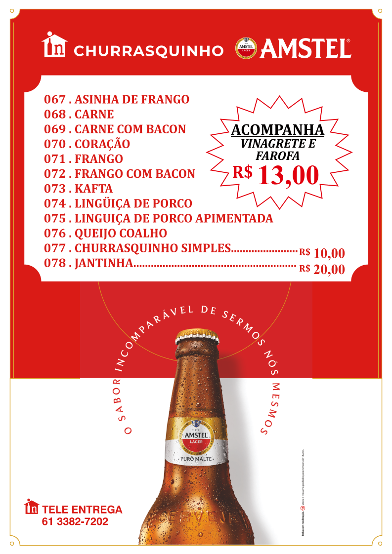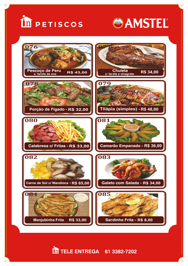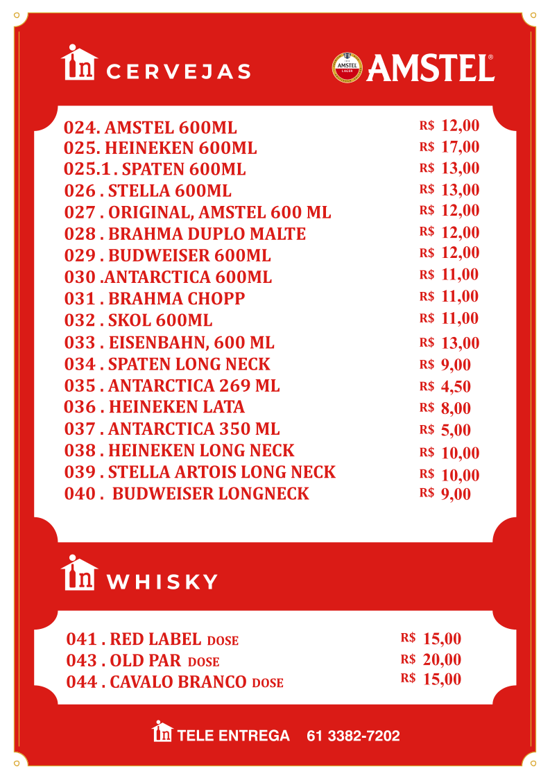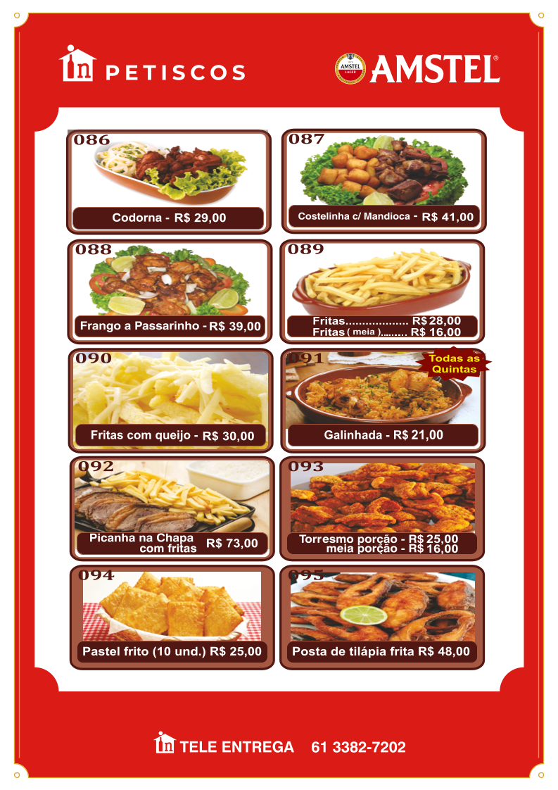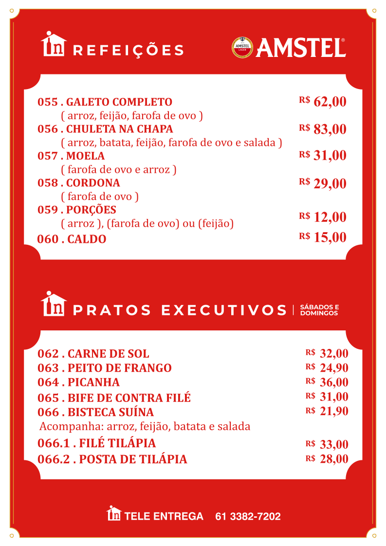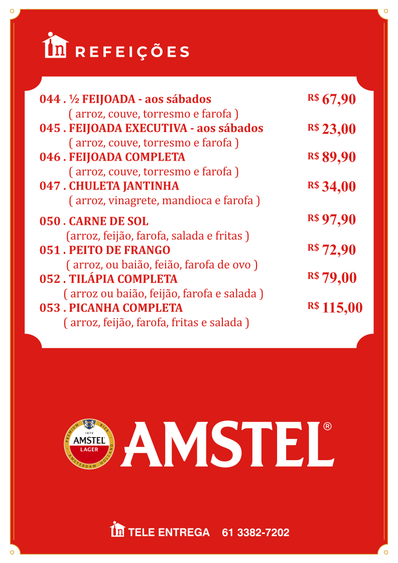 In Casa bar e distribuidora, nestled in Guará, Brasília, offers a comforting blend of traditional Brazilian flavors and casual bar vibes. Their menu stands out with hearty feijoada options, including half, executive, and complete servings, each accompanied by classic sides like rice, collard greens, farofa, and crispy pork skin—true comfort food that honors local culinary heritage.